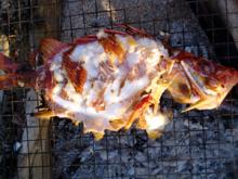 石垣島の海旨魚 目で見て旨い。食べて旨い。この、皮のカリッと焼けた感じがgood。とにかく油がのっていて、身も、ジュワ~としている。もちろん、刺身も美味しい。トガリエビス。赤くて、口の尖った魚。首のところ等に、太く鋭い刺があるので注意。 2005.10.30 4石垣島の海