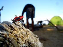 石垣島の海狙う者 part2 朝日がゆっくりと昇り、辺りの空気が少しづつ暖かくなる。と、そこに、光に誘われるように虫一匹。流木の上にたたずんでいる。『おおっ!旨そうな奴がいる』奇怪模様。赤に黒とは、いかにも毒々しい。表面はつるっとしていて、周りが微妙に反っている。まるで... 2005.10.31 4石垣島の海