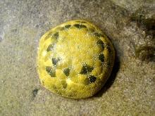 ツアー@石垣島まんじゅう 海の忘れ物。引き潮に置いてかれたのか、タイドプールにぽろんと転がっていた。無数の白いブツブツ突起物。間仕切りされた一つ一つは三角形になり、互いの辺がくっ付きあって、形造っているようだ。よく見ると模様がとても美しく、うぐいす色やら、かえる色や... 2006.03.23 2ツアー@石垣島