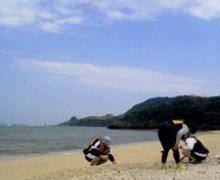 ツアー@石垣島ビーチに夢中 風強く、漕がずとも目的地に流れ着く。着いたビーチは宝でいっぱい。歩けど見るのは下ばかり。クモガイ、マキガイ、タカセガイ!サンゴ、シャコガイ、タカラガイ!!ここは宝島。 2006.03.28 2ツアー@石垣島