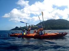 いいお天気続いてます!風向きが悪いのか?海の中は白くなっていてイマイチでしたが太陽はギラギラでしたね~(^^途中、浅瀬でデバスズメダイの集団産卵を目撃!色も変わっていて、きれいでした~すっごく楽しそうな写真♪カヤックの上に、立っちゃ...