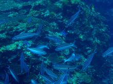 石垣島の海へんてこ へんてこな生き物を発見。透明で、長~くて、顔がめちゃくちゃ小さくて、眼が青いです。そして、縦になって泳いでいます。これは....うなぎ?うみヘビ?たちうお??なんでしょねぇ(-""-;) 2006.11.18 3石垣島の海