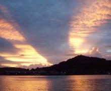 びっくり出来事などなど|雑記夕日光線 夕陽の道しるべ。一直線にどこまでも伸びる赤い光。ジンと心に響いて、言葉も出ない。ちょうど夕日のところに雲がかかって、両脇から光が漏れました。力強い光が凄い迫力で広がって、雲々を染めてました。シルエットの濃淡の凄いこと...圧倒です。:: ち... 2006.12.16 7びっくり出来事などなど|雑記