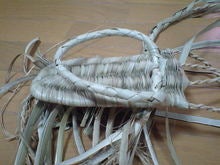 ツアー@石垣島鼻緒が付いた だんだん草履らしくなってきました。鼻緒はもちろんアダン葉を編んだものですが、芯紐も月桃の茎の繊維から縄ををなって作りました。とっていい香りがするんですよ~。 2007.06.10 0ツアー@石垣島