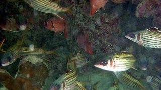 石垣島の海そ~と覗いて見てごらん~♪ 珊瑚の下の隙間~。覗いてみたら、こんなことに......イットウダイとマツカサちゃん。体が赤いのは、暗いところでは赤っぽい色の方が目立たないからだって。賢い~ よくできてますね。それにしても、岩の下や、洞窟の中など、暗いとこにいる魚は目がで... 2008.06.15 2025.06.04 2石垣島の海