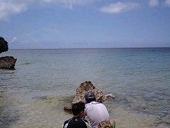 ツアー@石垣島二人海を眺める 本日も暑い石垣島。最高のお天気が続いています!海を眺める親子。では、なく(笑)!!暑いので、海の中で昼食をとる親子でした(笑)!! 海につかっていたい、そんな陽気です。でも、水の中は気持ちが良い~♪です!シホ 2009.08.15 2ツアー@石垣島