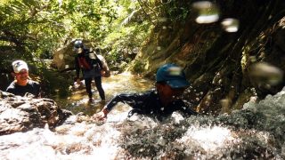 ツアー@石垣島水水水! 大人も子供も、水に打たれて行くぞ!足元は、つるつる滑る岩だけどがしがし登る。子供と大人の立場が入れ替わる現場(笑)元気爆発で何より!はちべえ 2018.08.19 0ツアー@石垣島