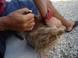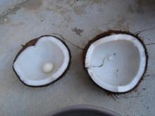 下を見てビーチを歩いていたら、オット!やしの実発見。