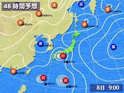 すっごいですよ。 八重山諸島 X Facebook LINE LinkedIn コピー コメント 2006.08.06yahooの天気図より天気図がすっごいことになってますよー雨が降り降りちゃんは喜びますが….。7号・8号・9号!うひゃひゃひゃ~。八重山に近い台風は、『ほぼ停滞』ですって。………………..困ります。ほんとに困るんです。雨の日は、雨を楽しみながら漕ぎます。風の日は、風を楽しんじゃいます。台風は…台風は…見て楽しみます。空の雲が凄く綺麗だったり、リーフの中で波が立ったり、とにかく、いつもと違うことが起きるので、それは楽しみだったりします。でもホントにこまるんだけどナァ。トホホ。