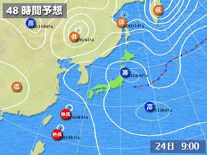 yahoo!天気情報より48時間後の天気図