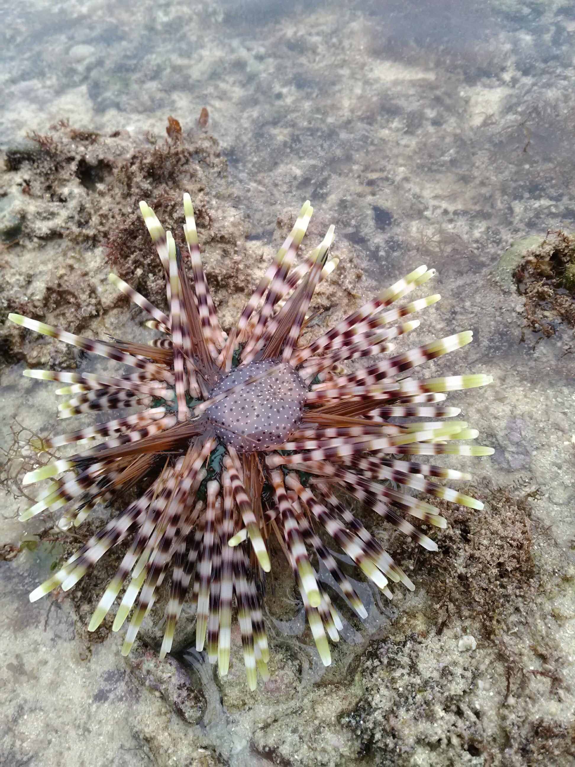 針はガンガゼより太く、自分で刺さない限り刺さりそうもありませんでしたが、