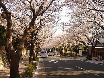 道に積もる桜のじゅうたん。