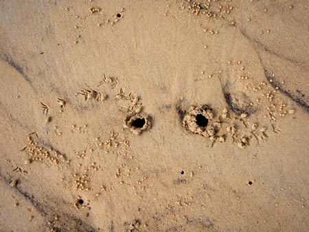 丸い粒はカニが残した泥団子。