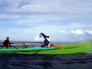 日本の漁師も、カヤックを見て心配で声をかけにくる。