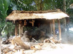 小屋の2メートルほどの天井は、真っ黒にすすけている。