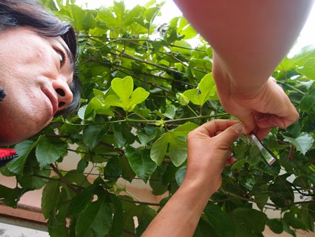 番頭の日課です びっくり出来事などなど|雑記 X Facebook LINE LinkedIn コピー コメント 2013.04.13玄関先に伸びに伸びたパッションフルーツ。番頭の日課は受粉作業です。手を加えてやると、生るは生るは。翌日には小さな実が顔を見せます。違う花の花粉でないと受粉しないようで、毎日せっせと頑張っています。まだ青い実は、黄色になるのか?紫になるのか??さてさて、楽しみでございますゆき