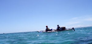 どこまでも青い海の上を漕ぐ。