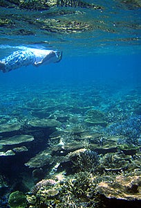 カヤックの下はサンゴのじゅうたん。