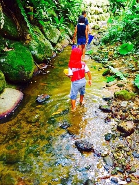 子供達は網を片手に川沿いのパパイヤを収穫したり、セミの抜け殻を集たり、エビを捕まえたりと、とても元気。