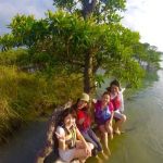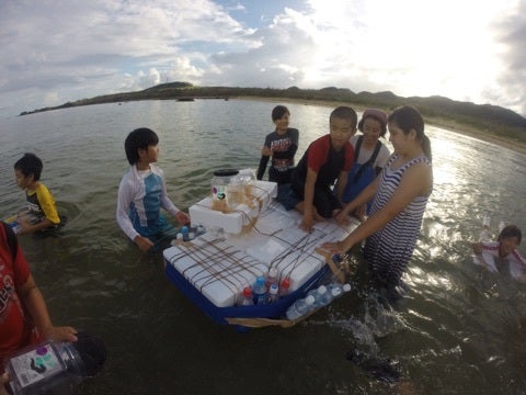 みんなで作った筏や浮き輪を持って、いざ出陣。
