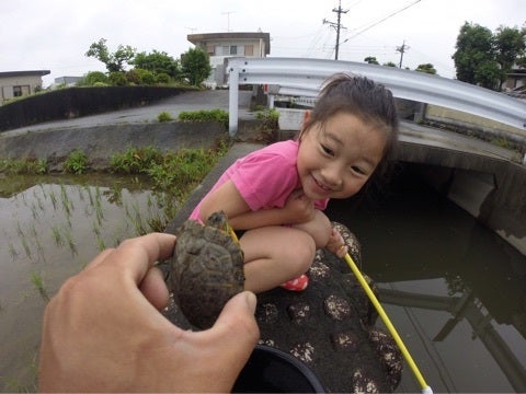 大きいミドリガメは噛み付くから危ないとパパから教わってる、だから怖いってビビっていました。