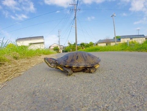 道を普通に亀が歩いてる平和な光景にホッコリ