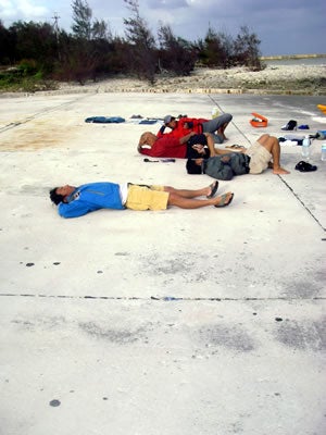自分の荷物は、全く紐で縛っておらず、海に散らばっている。