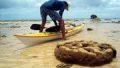 無数の珊瑚の欠片が打ち上げられている。