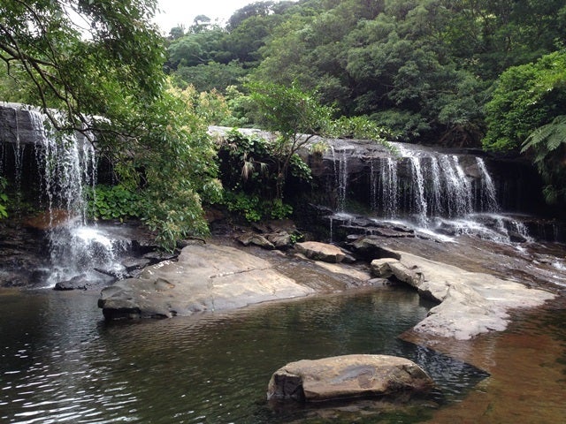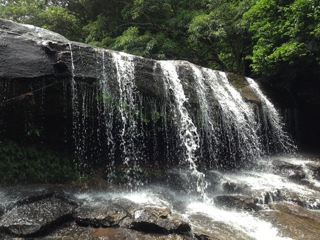 広い滝から流れる水が涼しい-----–!!!