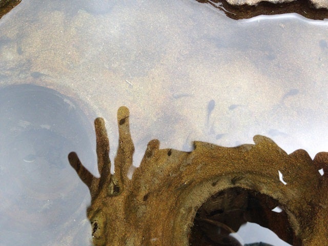 おたまじゃくしが下流へと泳いでいました。