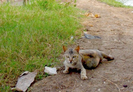 お腹が重くって、動けないニャァ~