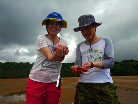 カニ、ハゼ、とんとんみーを捕まえようと干潟を駆け回る少年のような旦那様・・・「彼がこんなにはしゃぐ姿はめったに見ないです」と奥さん言ってましたよ~。