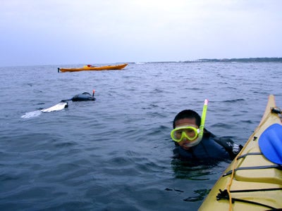 カヤックで沖まで出て、そこららポ~ンと飛び込みます!