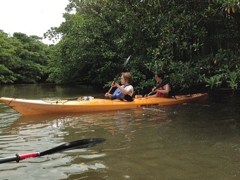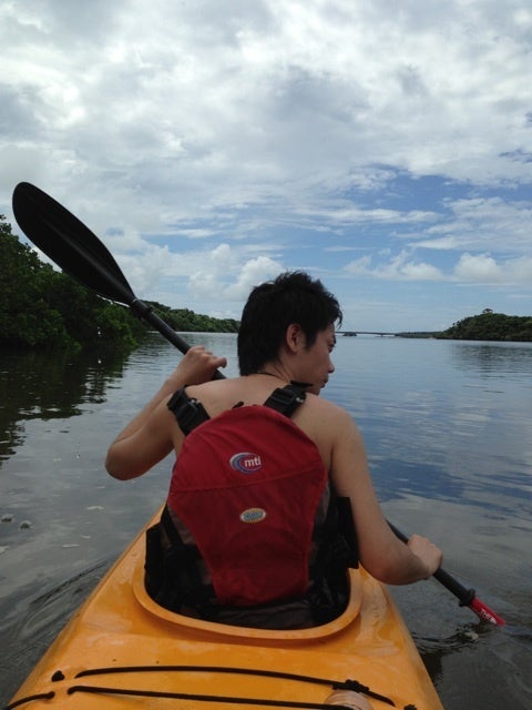 マングローブに襲われるぅー ツアー@西表島 X Facebook LINE LinkedIn コピー コメント 2013.06.172025.06.17本日のお客さまは、 年に一度旅行されるという仲良しな3人組マングローブ探検にいざ! 細い支流に入ってトンネルくぐりますよーっ・・・すると、後ろから 「マングローブに襲われるぅー。」 と叫び声が。笑たしかにマングローブに刺さってました!笑でも上手に脱出帰りは漕ぎにも慣れて、スイスーイマングローブ探検は、 時にマングローブに襲われることもあります。笑いえ、いっそ襲われて マングローブまみれになりましょう!笑ご参加ありがとうございました!ともすけ