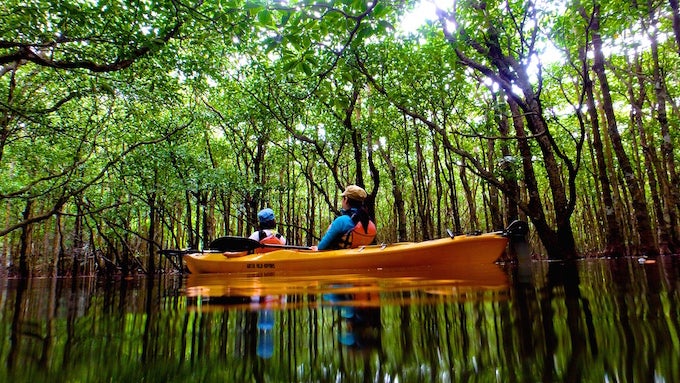 今日の西表 ツアー@西表島 X Facebook LINE コピー コメント 2015.02.25はいさい!風がなかなか北にまわらないので暖かい日が続いてます。そんななか今日は久々の西表へ。うん、やっぱり西表のフィールドは雄大です。何がどう他と違うとか細かいことは置いといて、すごくダイレクトに自然を感じることができるのが西表の魅力ですね。ただぼーっと浮いてるだけで気持ちいい。360°マングローブに包まれると凄く癒されます(ガイドの僕が邪魔なくらい)。最後に、とっておきのポーズを!!とお願いしたとところ、必殺技を披露してもらえました。ありがとうございます。うんてん