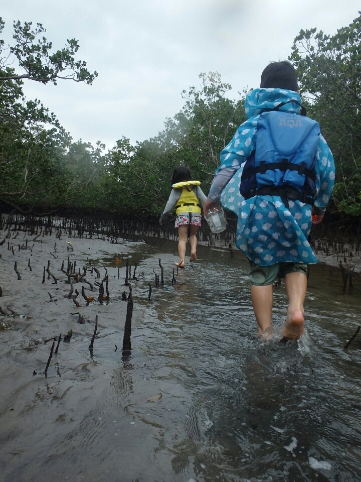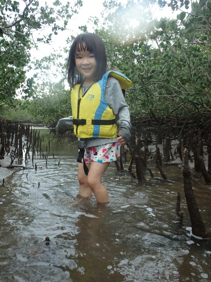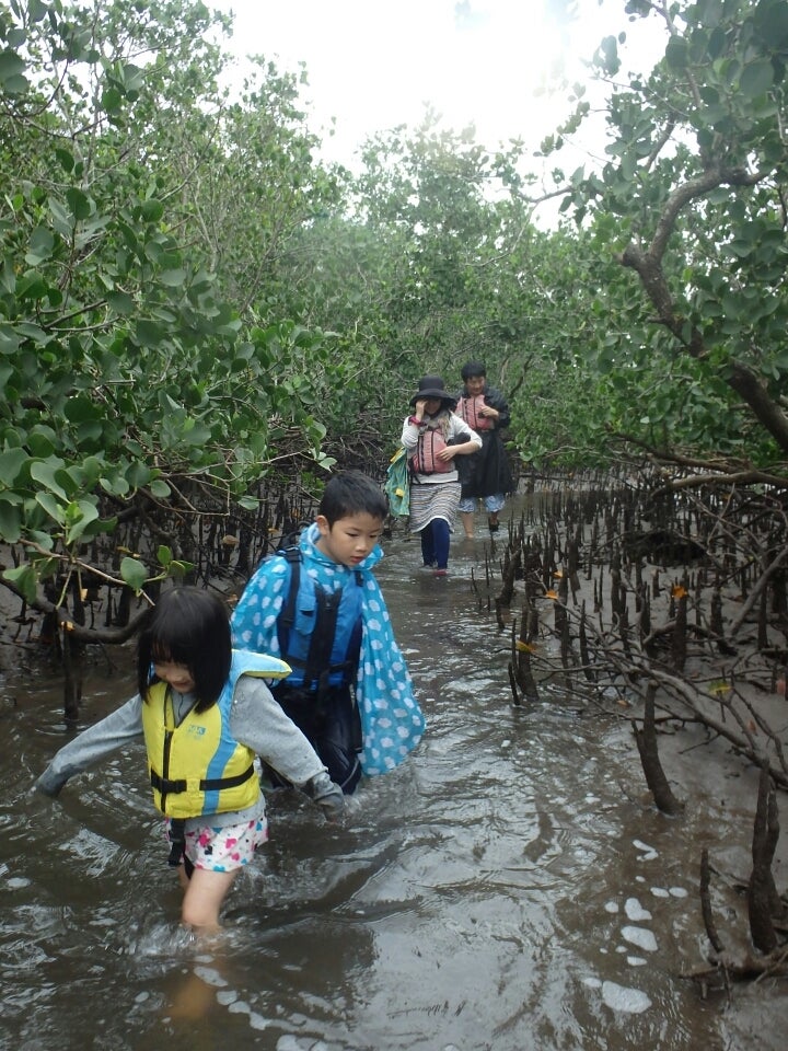 マングローブに感動の様子か