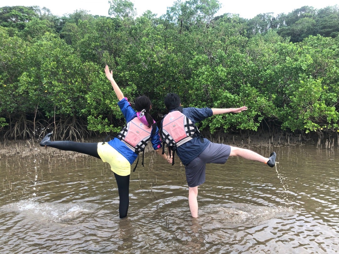 干潟ではカニやハゼ、フグの観察を。マングローブと一緒に写真をパシャリ🤳