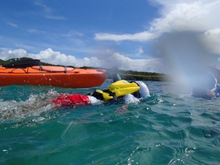 泳ぎが苦手なE君・A君。こんなキレイな海があるのに泳げないなんてもったいない!