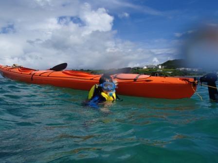 二人とも最初はパニックで暴れまくって大変でしたが、徐々に顔をつけれてスノーケルで呼吸できるようになり、最後は自分でバタ足して魚見ながら泳げるようになりました。