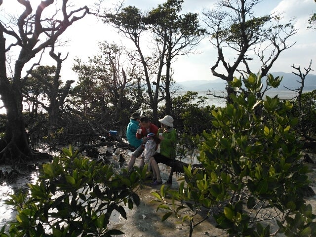 陽気な小浜島 ツアー@小浜島 X Facebook LINE LinkedIn コピー コメント 2014.01.07はいさい!1月なのに嘘みたいな陽気な小浜島です。よーく見ると最近渡ってきたカモ達が飛んでいます。毎日マングローブにいると日々へんかする自然の姿がみれますね。マングローブを漕いだり歩いたり同じ場所でも全く違う景色になります。倒れたオヒルギのベンチでひと休み。天気にめぐまれた年明けでしたが、週末にはまた寒くなりそうです。ムーチーたべて寒さを乗り切るぞー!!うんてんAndroid携帯からの投稿