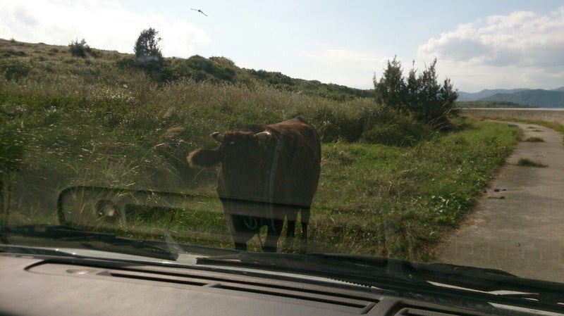 ミラー越しの ツアー@小浜島 X Facebook LINE LinkedIn コピー コメント 2015.01.04はいさい!ぽかぽか暖かい?暑い?日が続いています。小浜のマングローブへ移動する道に放し飼いの牛。通りたいけどちょっと狭いな…と思っていたら優しく避けてくれました!かなり大きいので放し飼いだと迫力満点!!最後はミラー越しにパシャリサイドミラーに映る街や夕陽ありきたりなので牛を入れてみました。うんてん