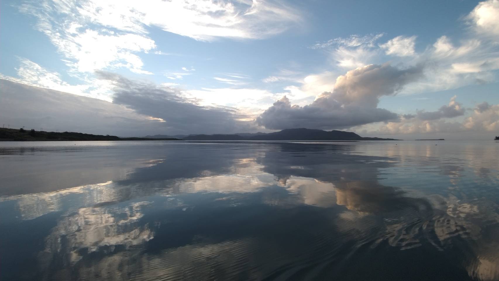 小浜島では油をひいたような海面。