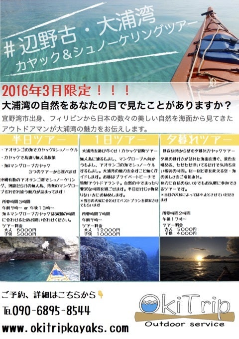 3月に沖縄本島に旅行の予定がある人は是非遊びにいらして下さい!大浦湾の素晴らしい自然をお伝えします!