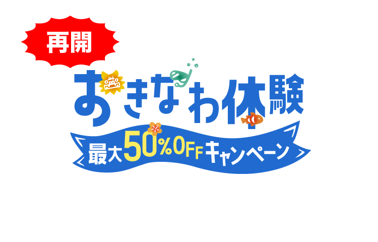 最大50%OFFキャンペーン お知らせです X Facebook LINE コピー コメント 2022.10.11実施期間2022年5月1日(日) 正午12時 ~ 2023年2月28日(火) 沖縄県以外の都道府県にお住まいのお客様もご利用可能になりました! とのことでかなりお得にご参加いただけます。この機会にぜひ(^^