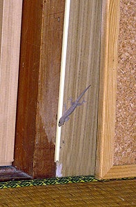 狙う者 ツアー@石垣島 X Facebook LINE コピー コメント 2005.10.27カサカサ...っと音がした。パッと振返ると、ジッと餌を狙うヤモリが。何だかいつもより、目が真剣になっているように見えた。体は小振りだが、かなりの量の虫々を食べてくれている、かなりうれしい存在。そう。暑さが戻ってからというもの、虫がかなり多い。夜も、数々の種類が飛び交い、這っている。ヤモリ!頑張ってくれ。