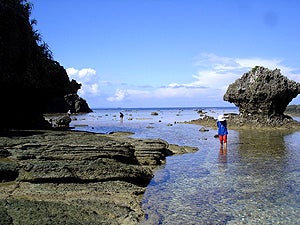 磯になっているところでは小魚が跳ね、岩の間に隠れる。
