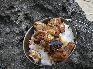 ご飯を炊き、温めたサンマ缶をボーンとのせました。