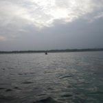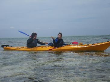 そして、今度は奥さんがカヤックの上から浅瀬の砂をキャッチ~!