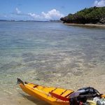 私はカヤックの上から眺める海と空、山の上から