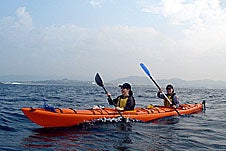 花と赤瓦の島、竹富島へカヤックで渡る。